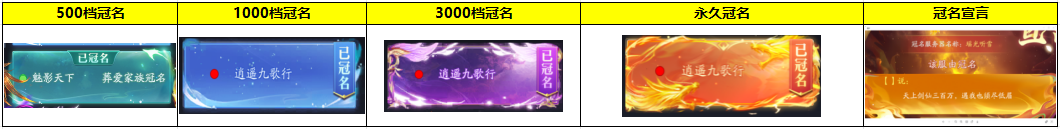 2、除永久冠名、永久宣言外,低实付档位的冠名及宣言可被高实付档位直接替换,无保护期!